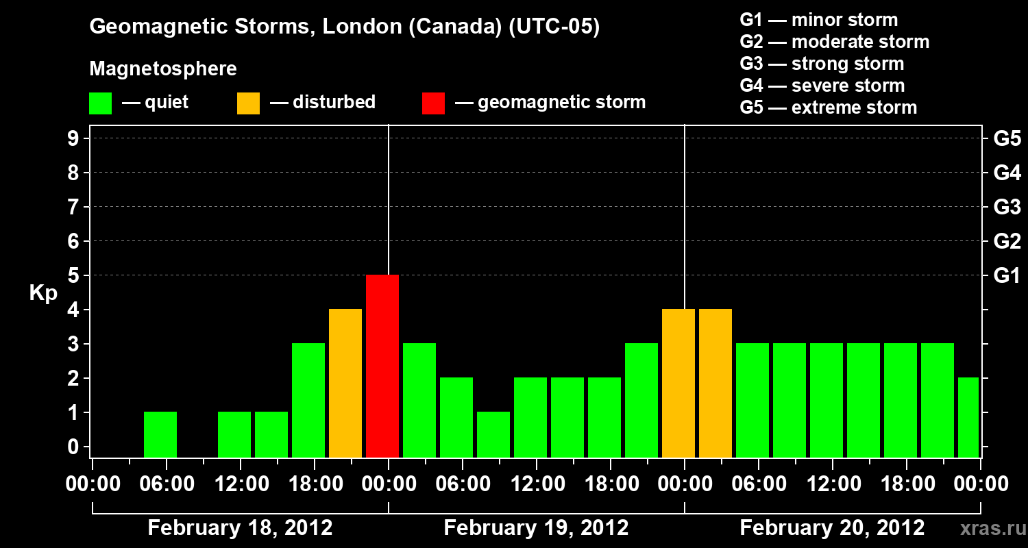 Geomagnetic storms in London (Canada) on Feb 20, 2012