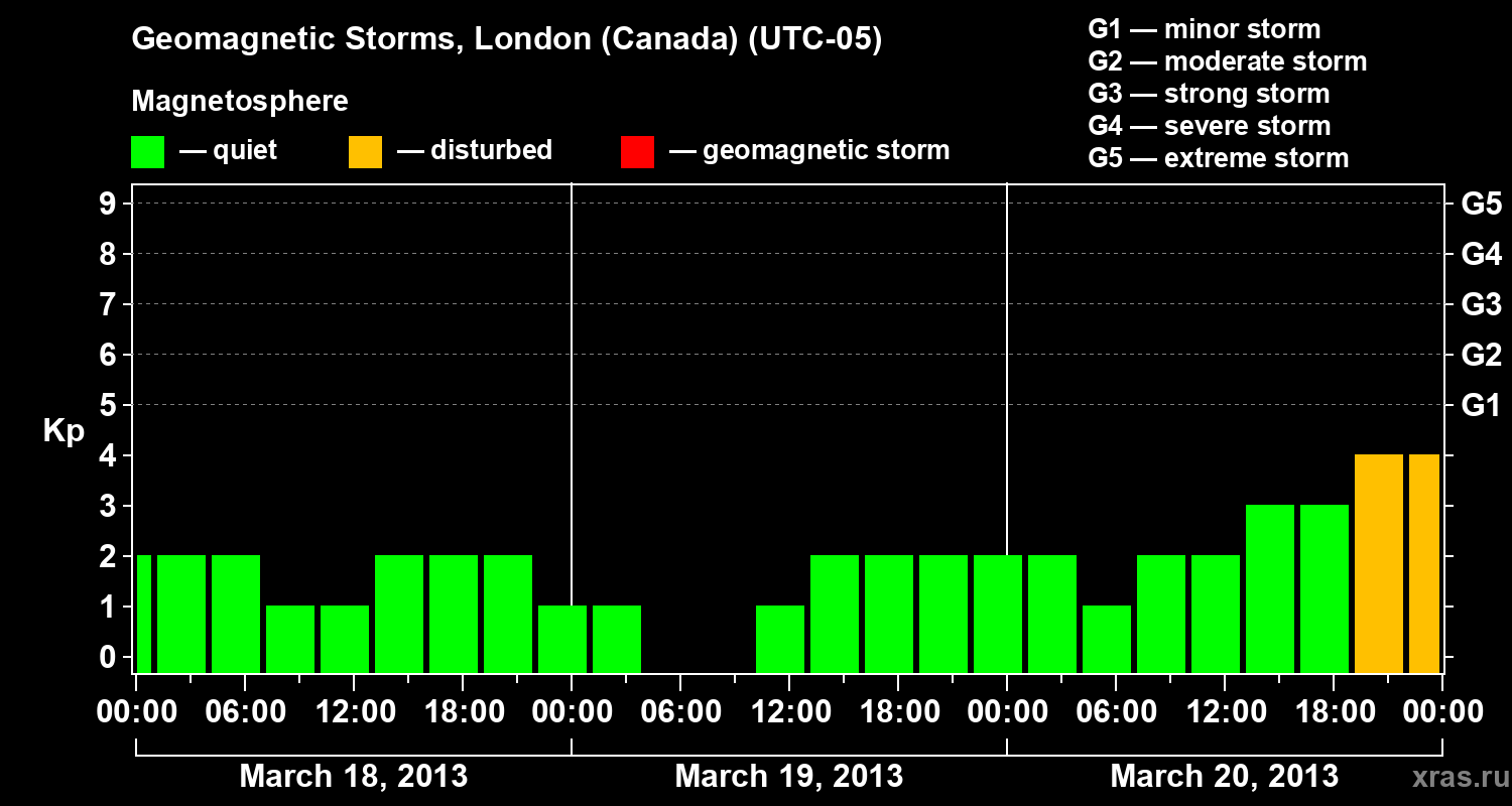 Geomagnetic storms in London (Canada) on Mar 20, 2013