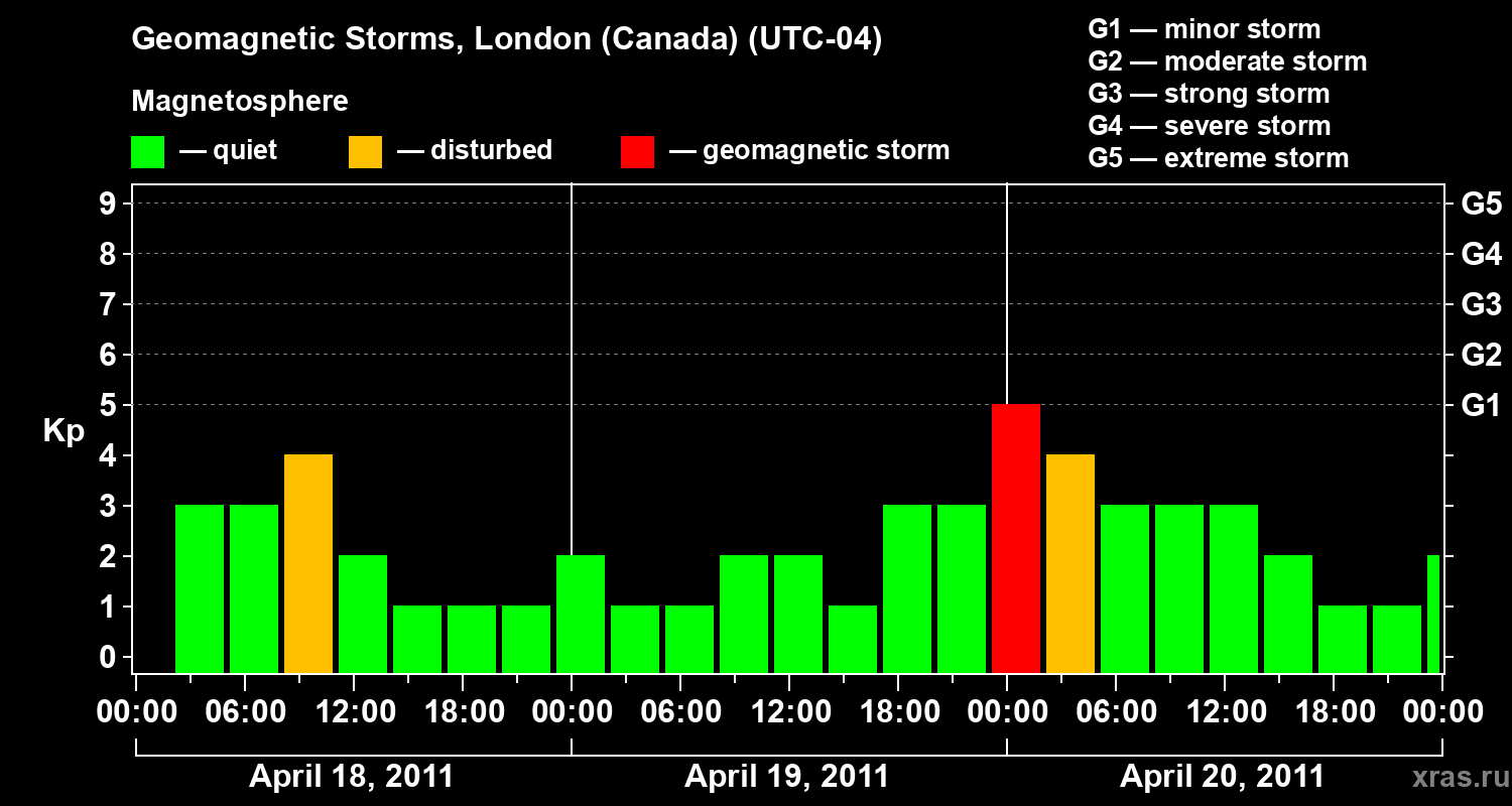 Geomagnetic storms in London (Canada) — Apr 20, 2011