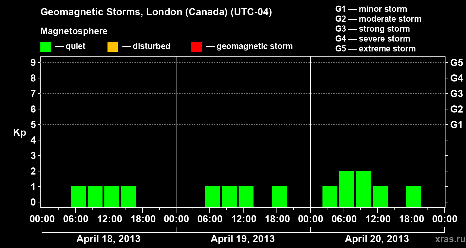Geomagnetic storms in London (Canada) — Apr 20, 2013