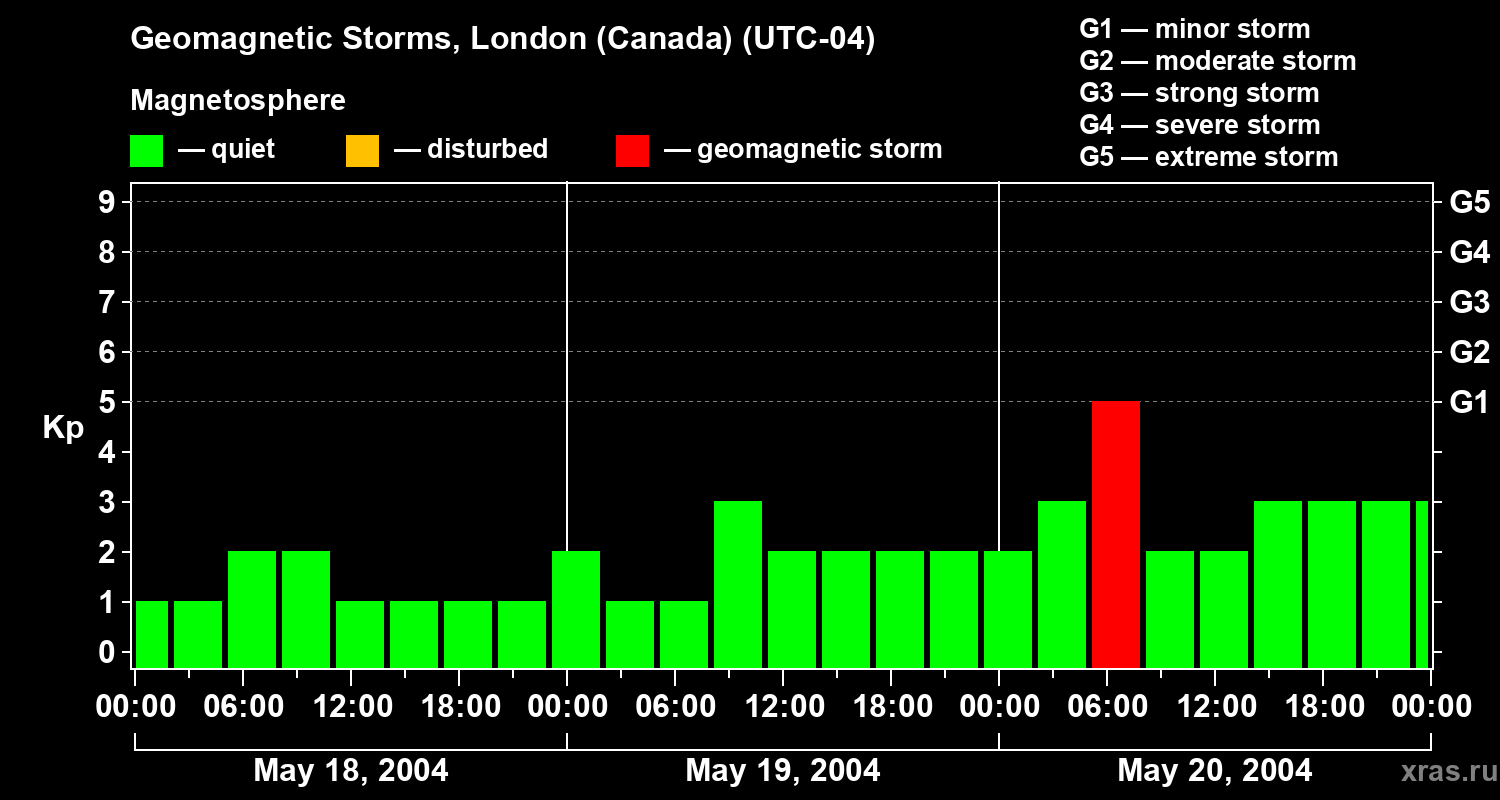 Geomagnetic storms in London (Canada) — May 20, 2004