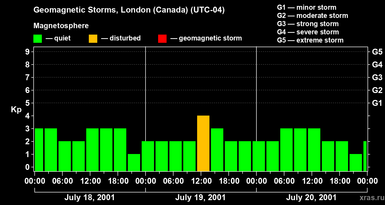 Geomagnetic storms in London (Canada) on Jul 20, 2001