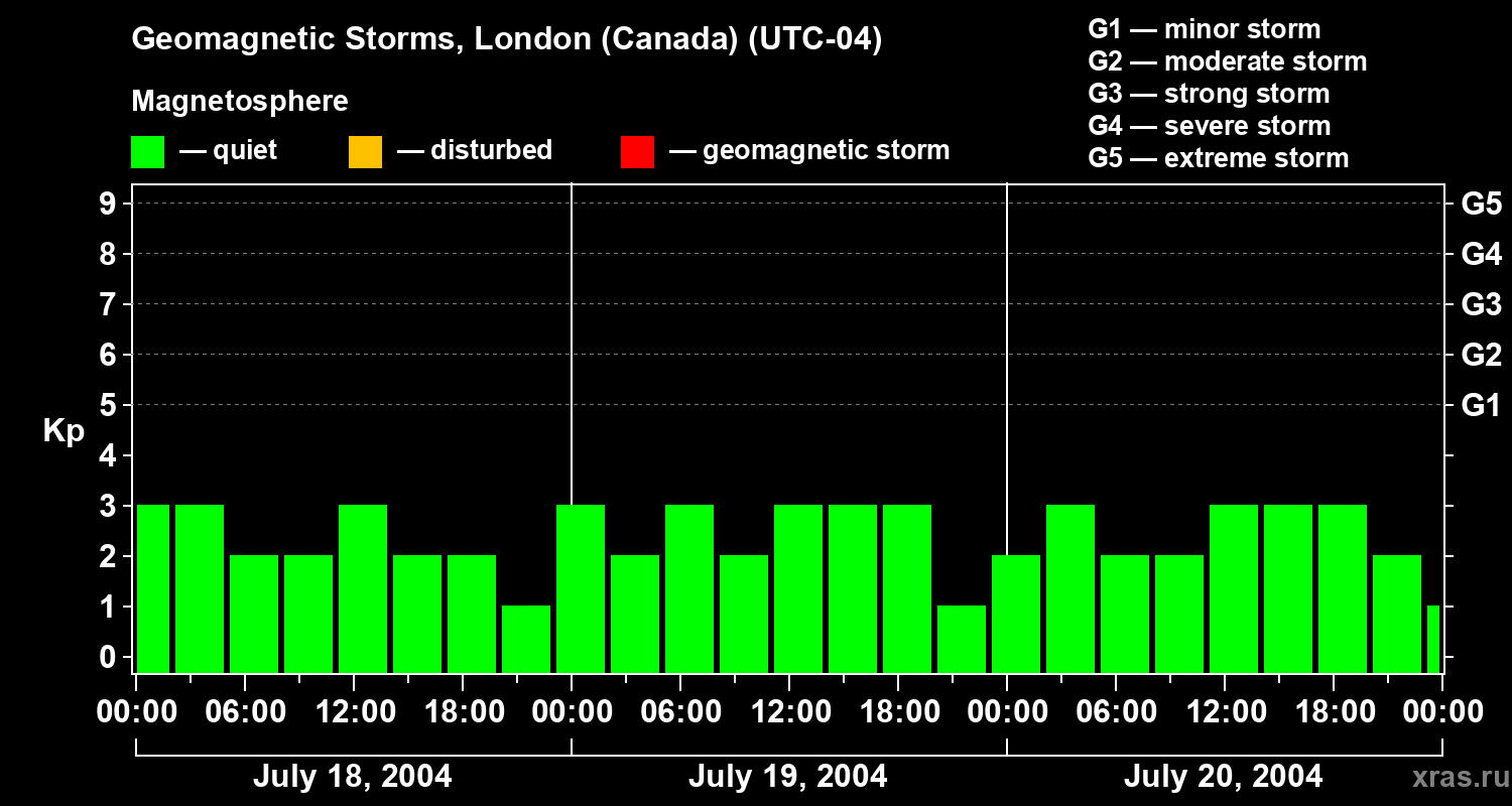 Geomagnetic storms in London (Canada) — Jul 20, 2004