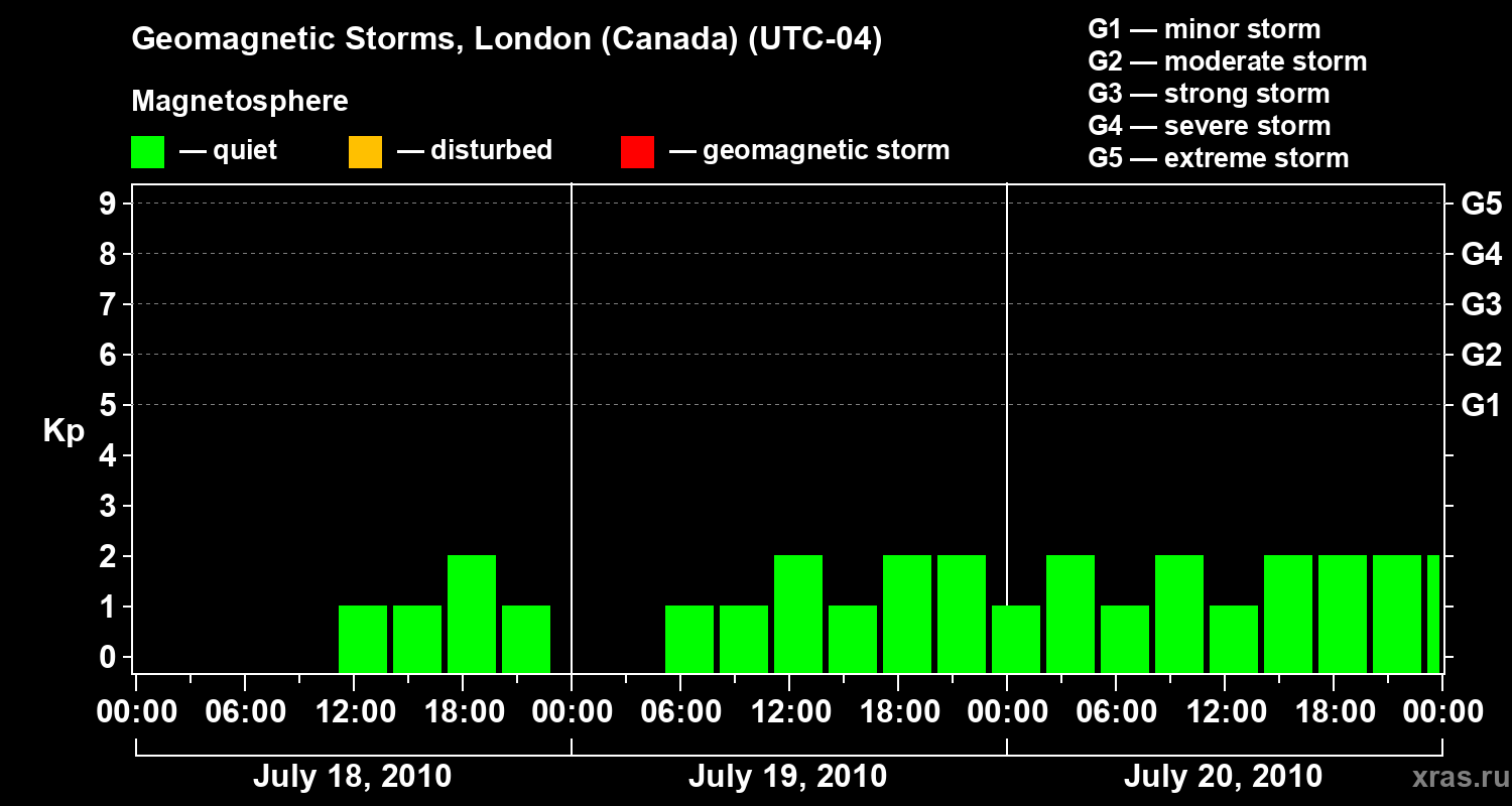 Geomagnetic storms in London (Canada) — Jul 20, 2010