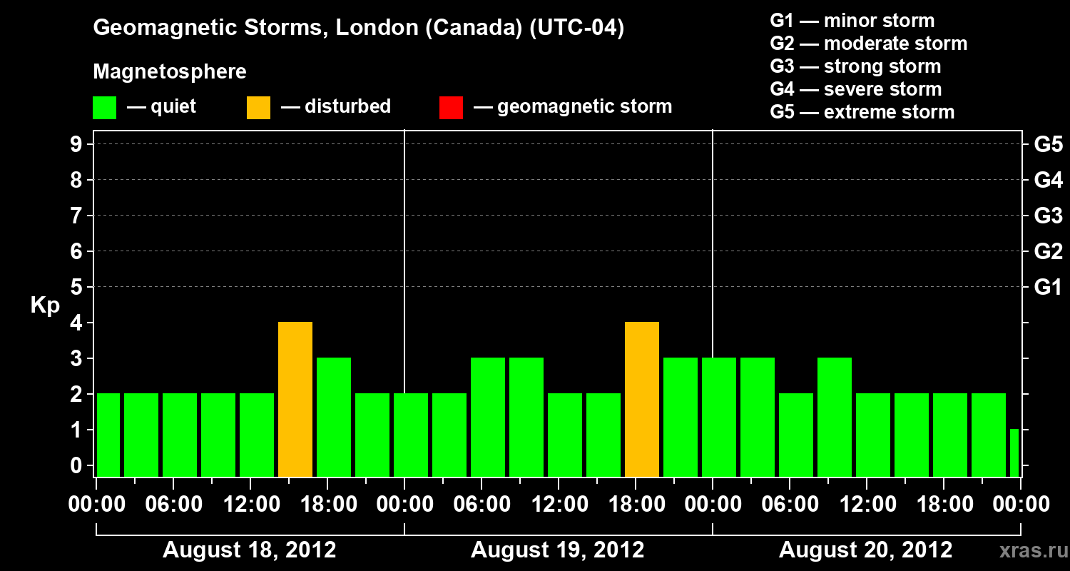 Geomagnetic storms in London (Canada) — Aug 20, 2012