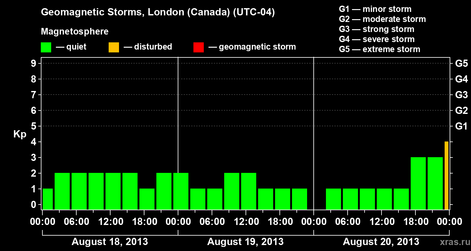Geomagnetic storms in London (Canada) — Aug 20, 2013