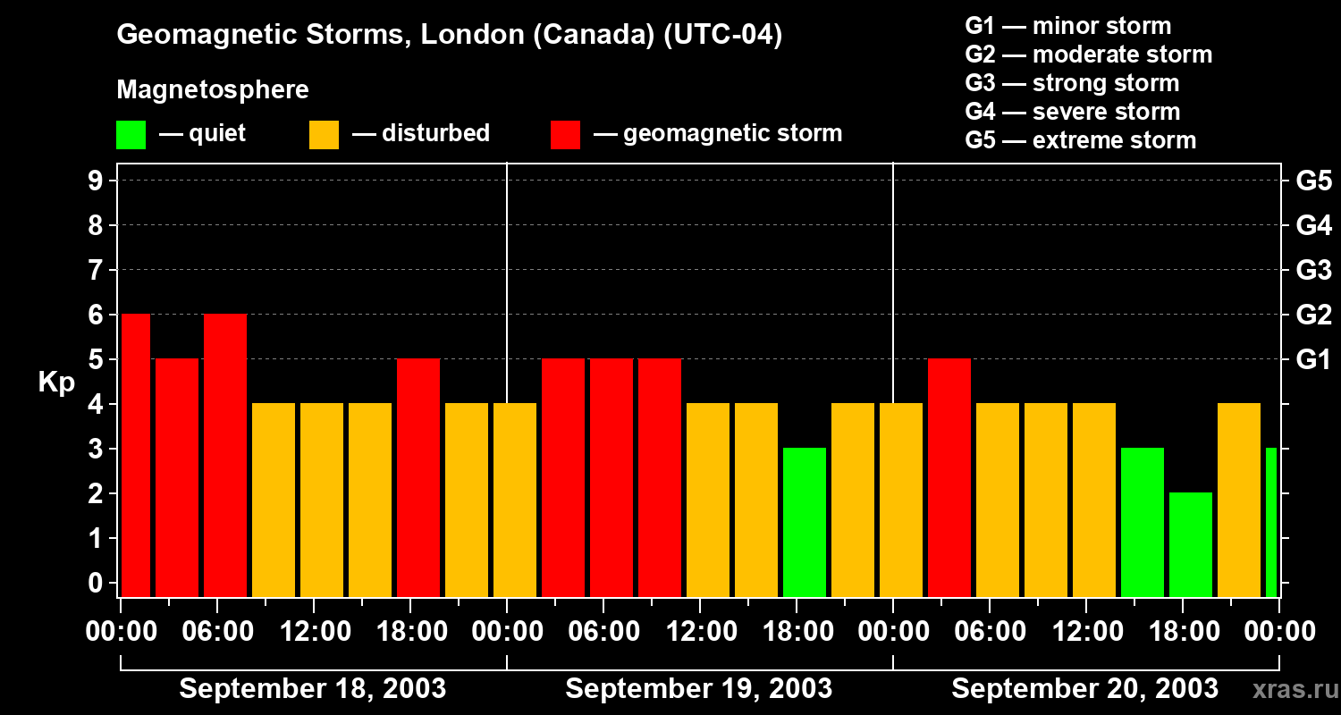 Geomagnetic storms in London (Canada) on Sep 20, 2003