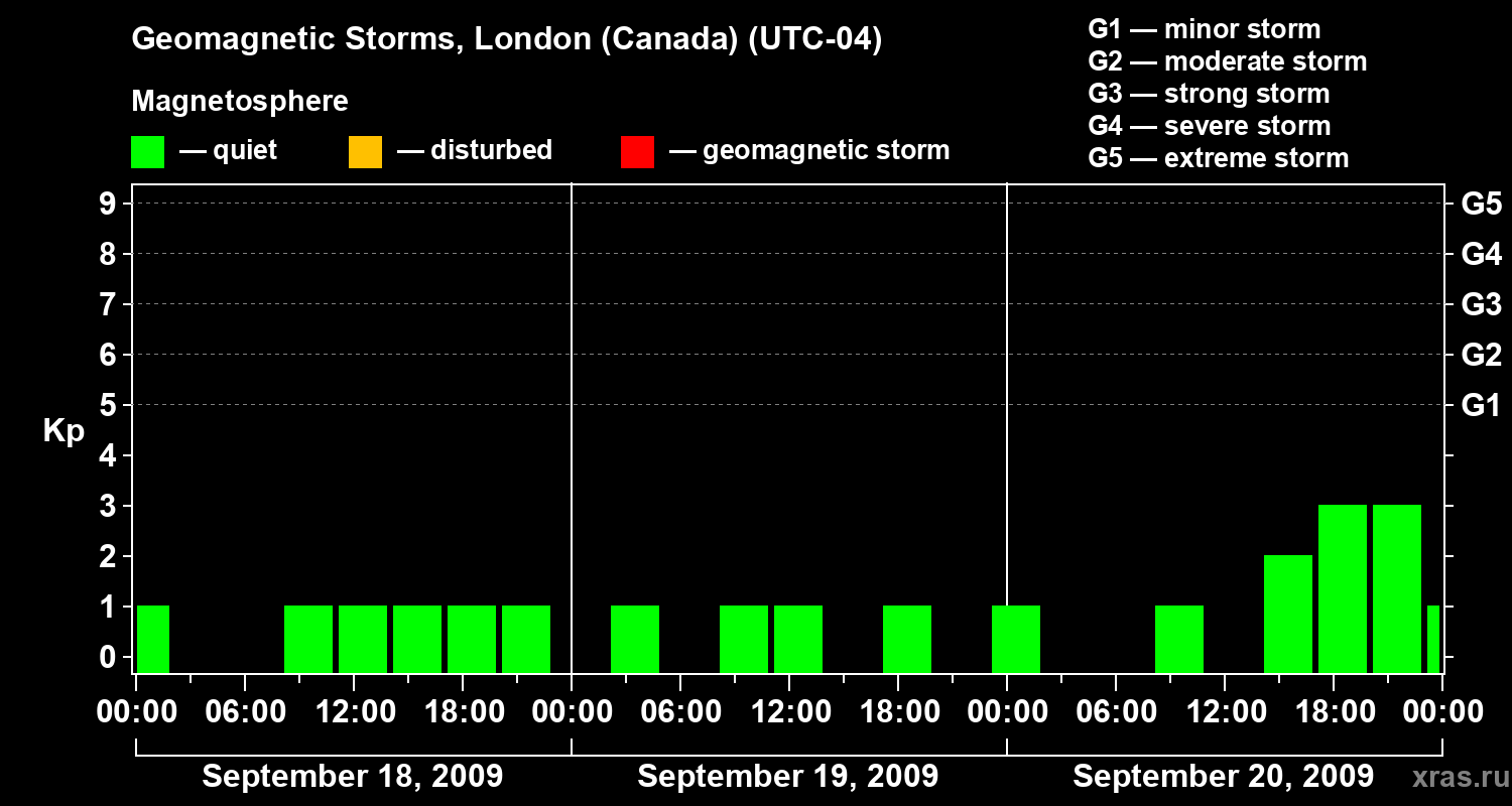 Geomagnetic storms in London (Canada) — Sep 20, 2009