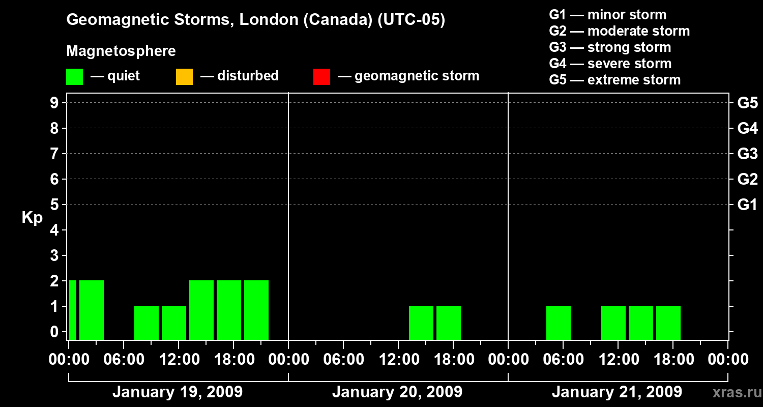 Geomagnetic storms in London (Canada) — Jan 21, 2009