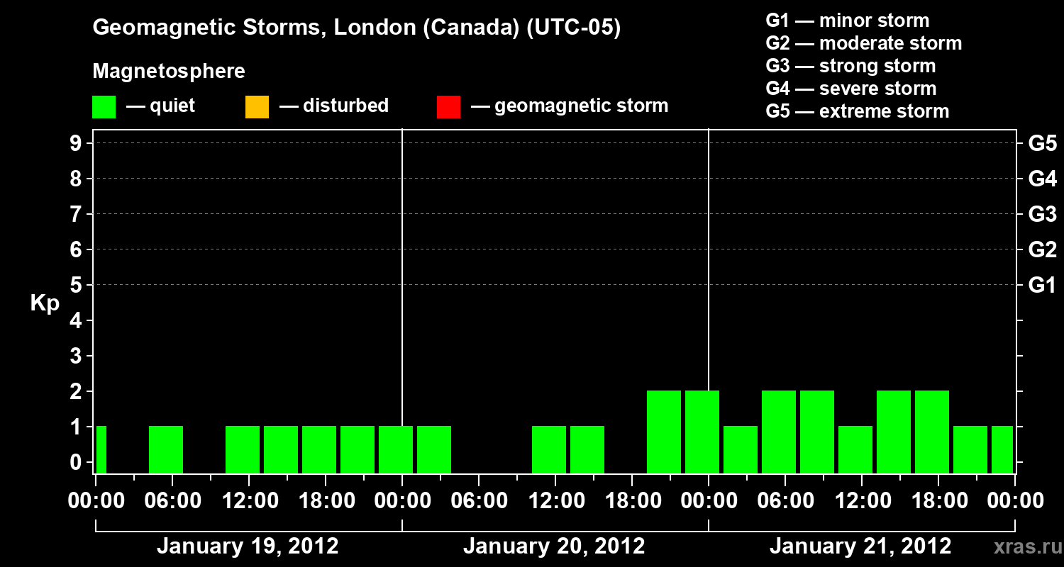 Geomagnetic storms in London (Canada) — Jan 21, 2012