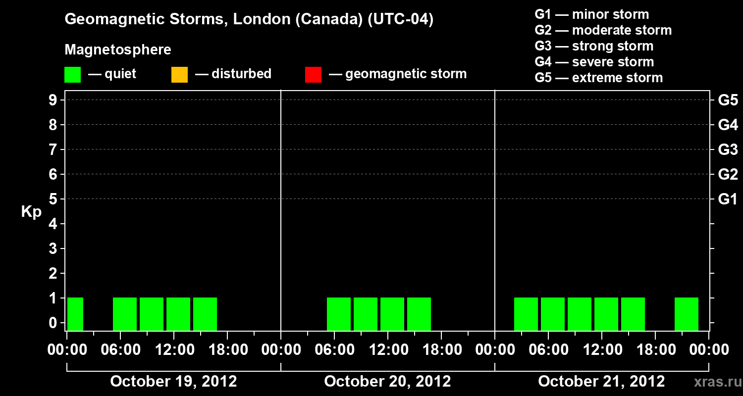 Geomagnetic storms in London (Canada) on Oct 21, 2012