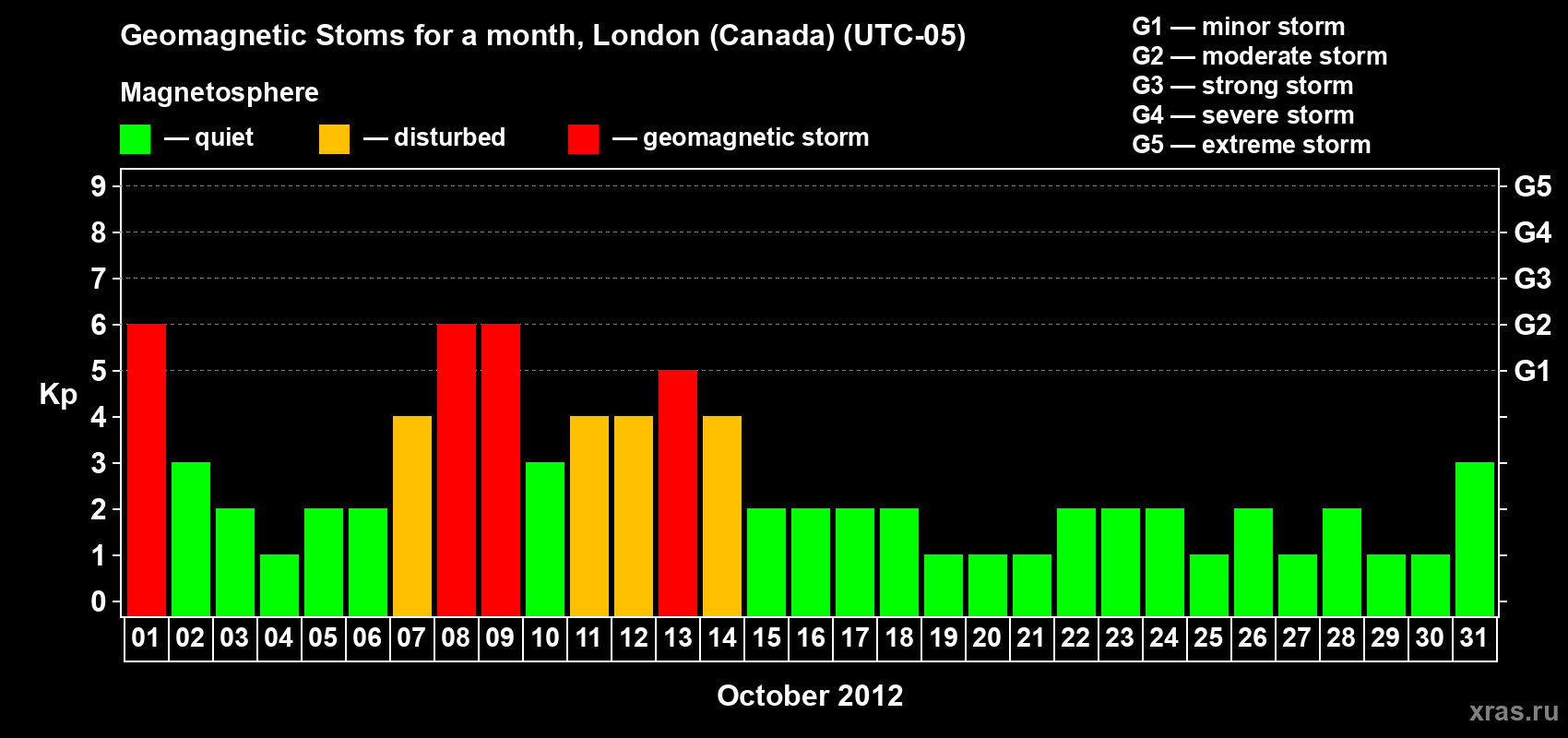 Geomagnetic storms in London (Canada) — Oct 21, 2012