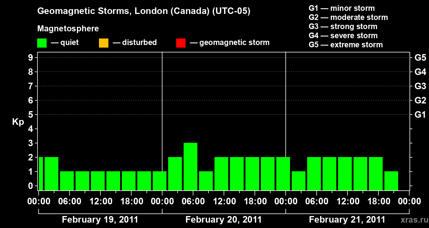 Geomagnetic storms in London (Canada) — Feb 21, 2011