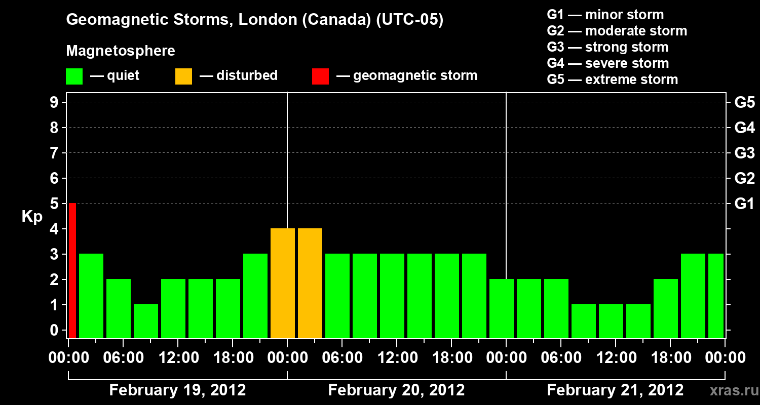 Geomagnetic storms in London (Canada) — Feb 21, 2012