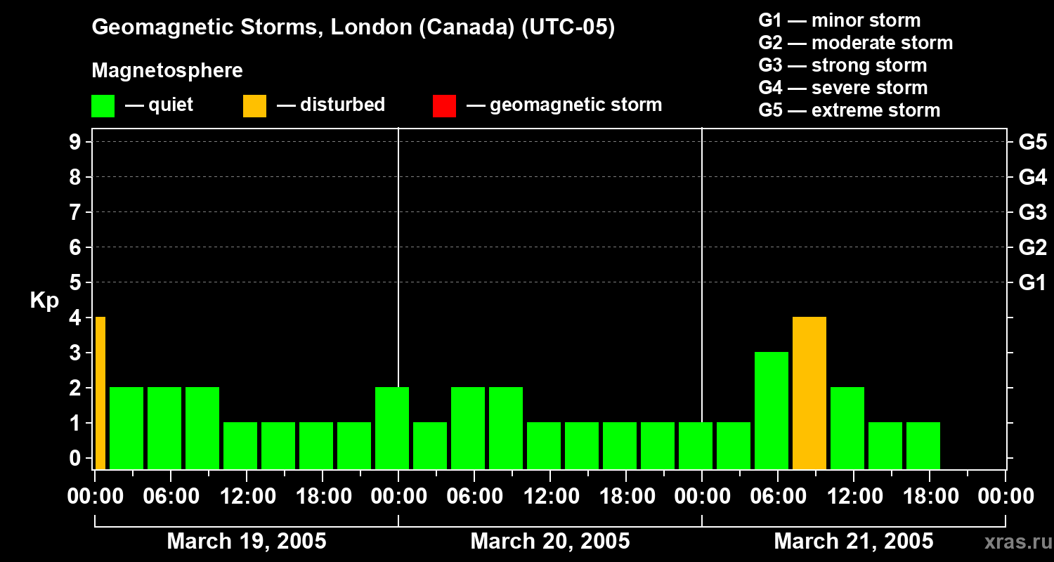 Geomagnetic storms in London (Canada) — Mar 21, 2005