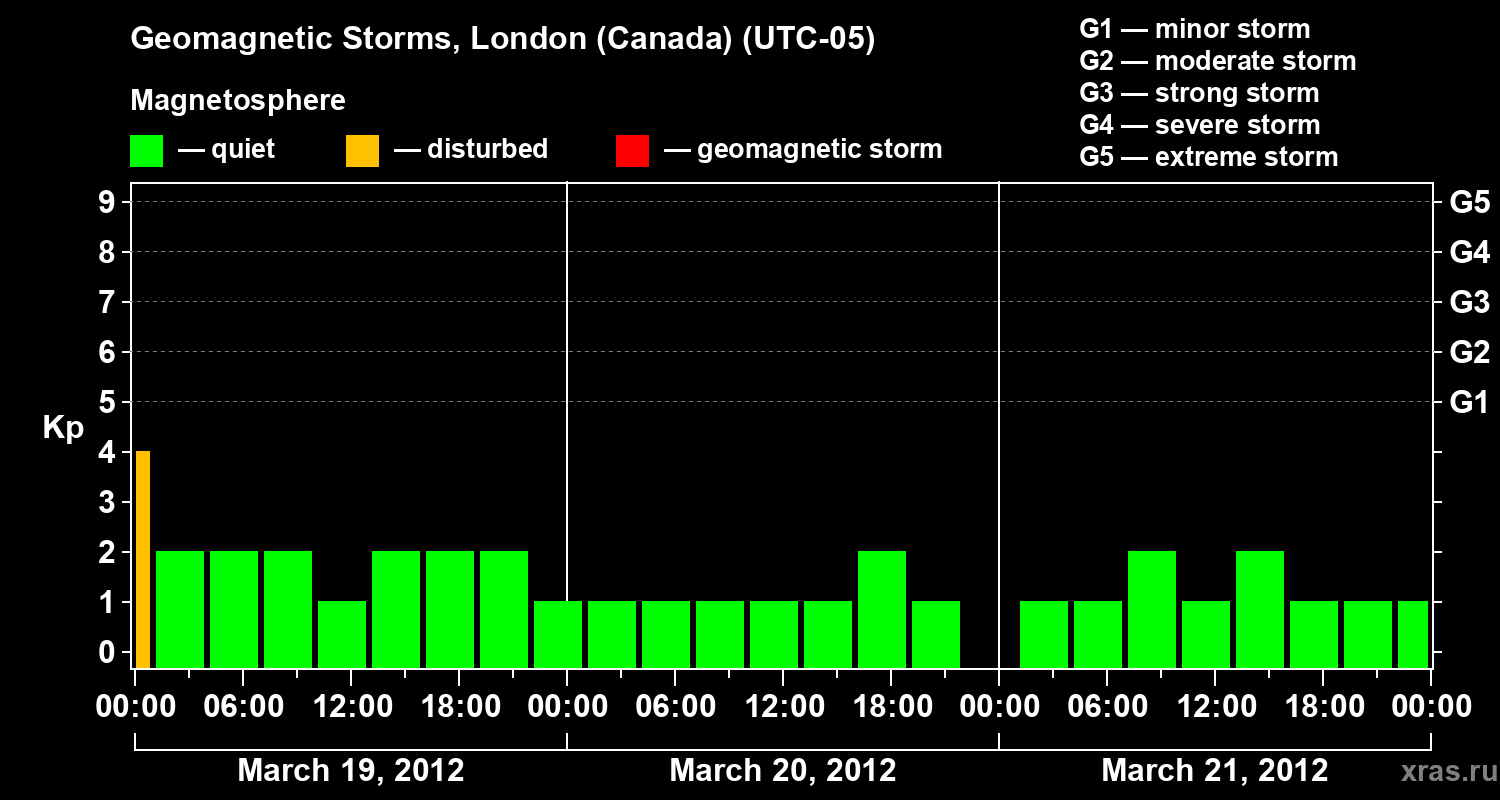 Geomagnetic storms in London (Canada) on Mar 21, 2012