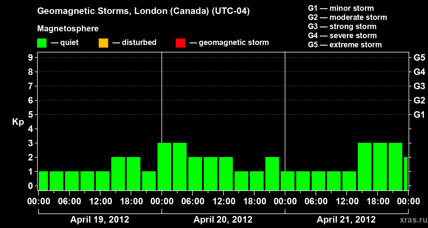 Geomagnetic storms in London (Canada) — Apr 21, 2012