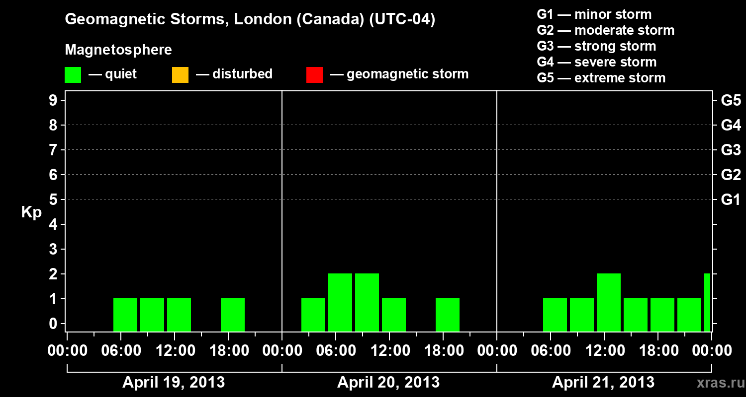 Geomagnetic storms in London (Canada) — Apr 21, 2013