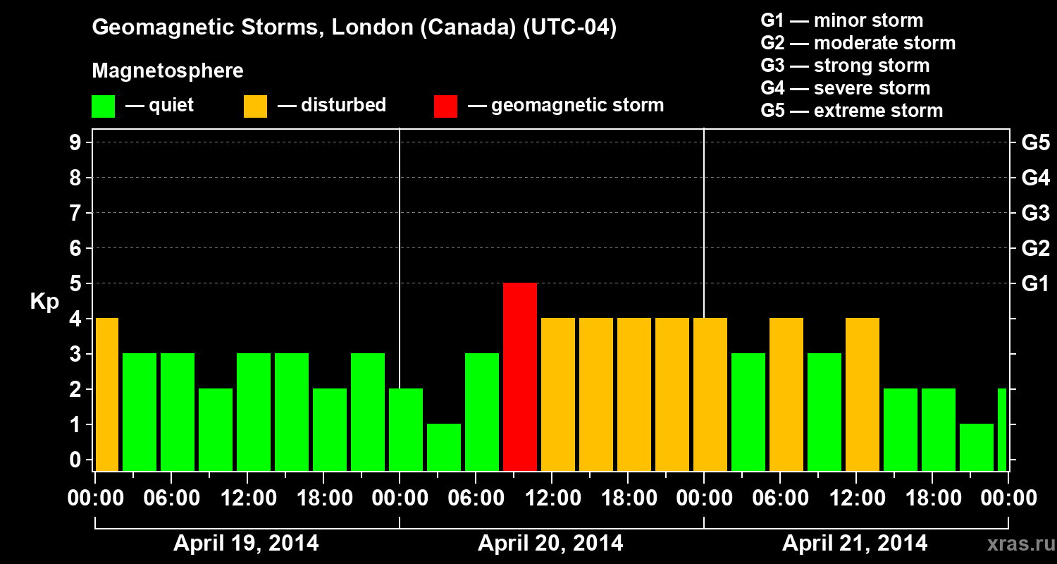 Geomagnetic storms in London (Canada) — Apr 21, 2014