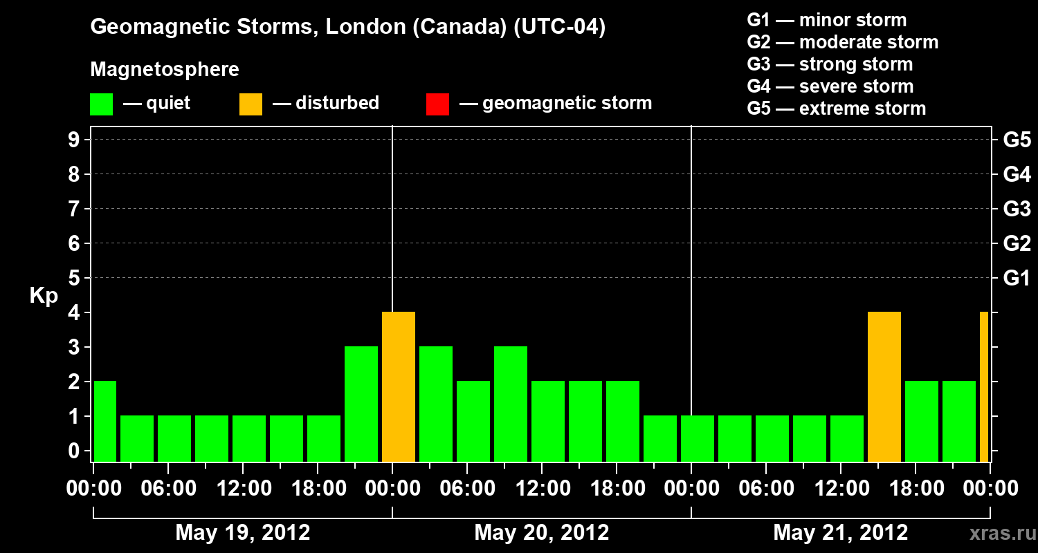 Geomagnetic storms in London (Canada) on May 21, 2012
