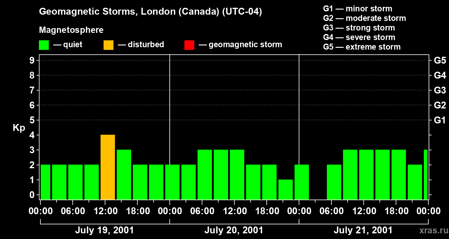 Geomagnetic storms in London (Canada) — Jul 21, 2001