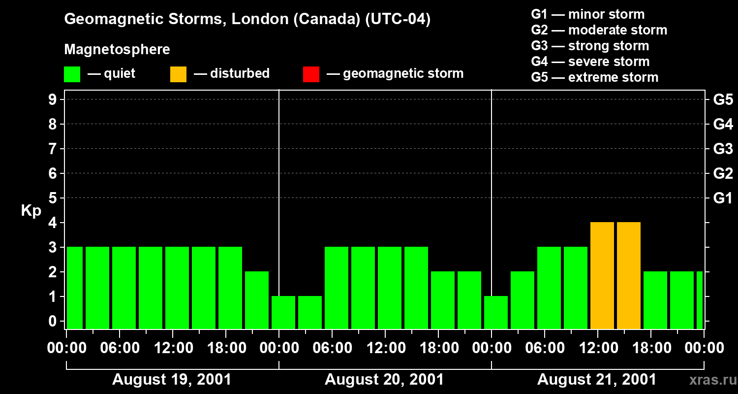 Geomagnetic storms in London (Canada) on Aug 21, 2001