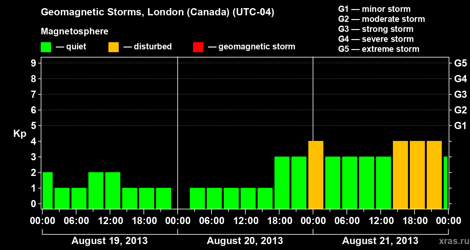 Geomagnetic storms in London (Canada) — Aug 21, 2013