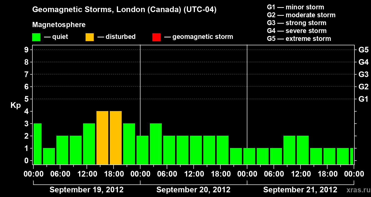 Geomagnetic storms in London (Canada) on Sep 21, 2012