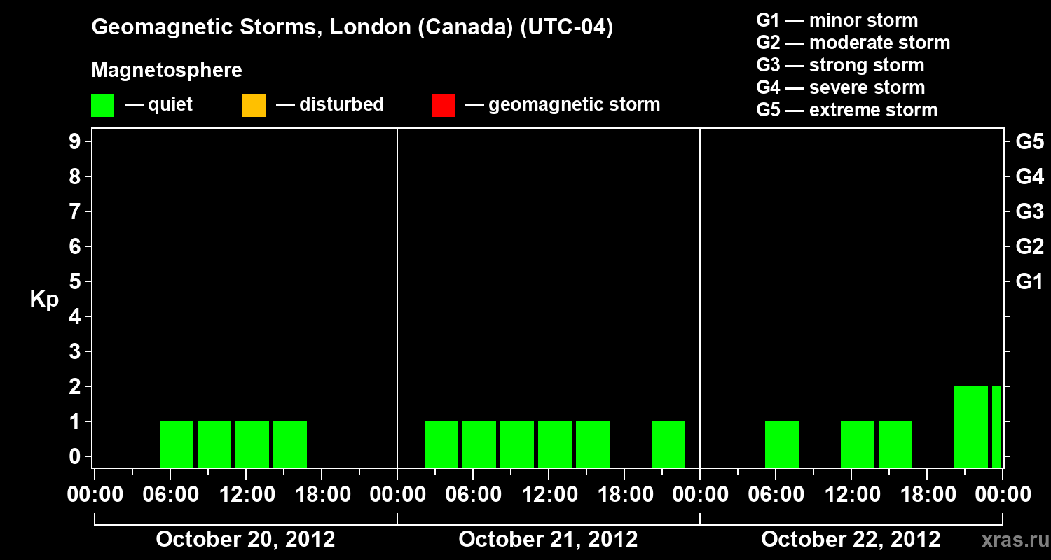 Geomagnetic storms in London (Canada) on Oct 22, 2012