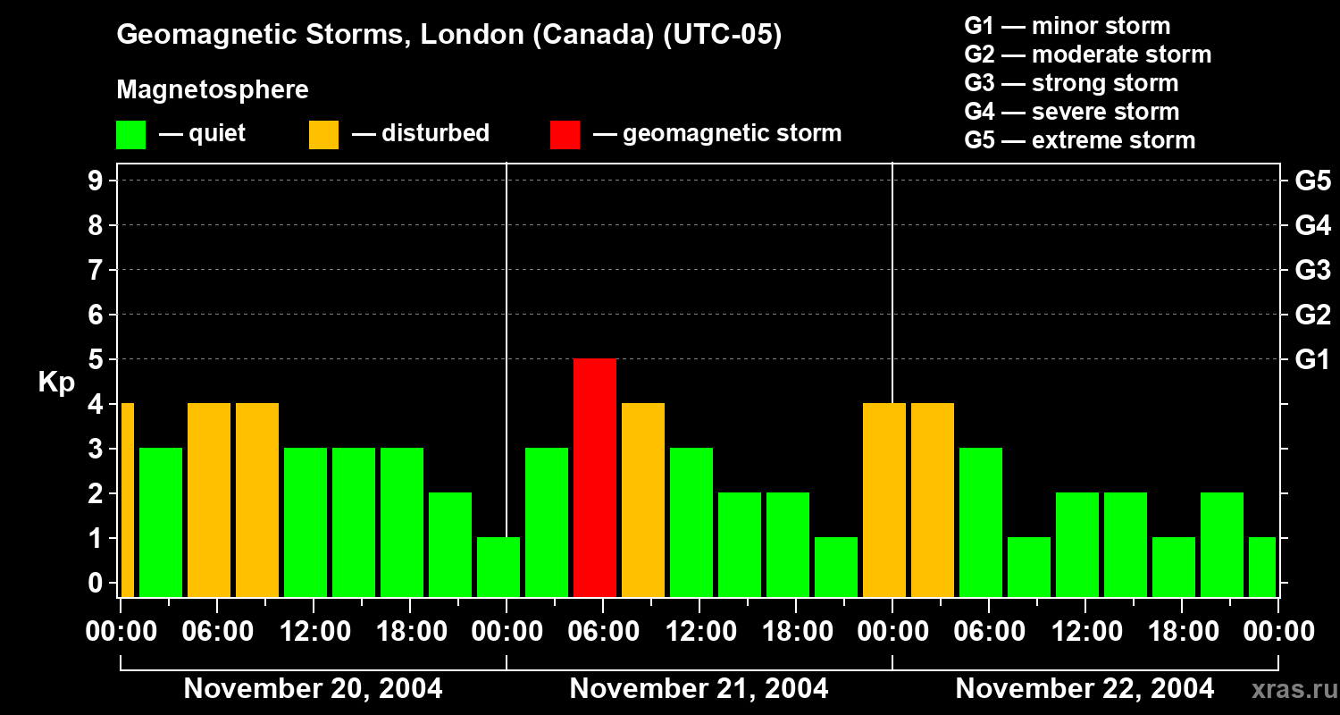 Geomagnetic storms in London (Canada) — Nov 22, 2004