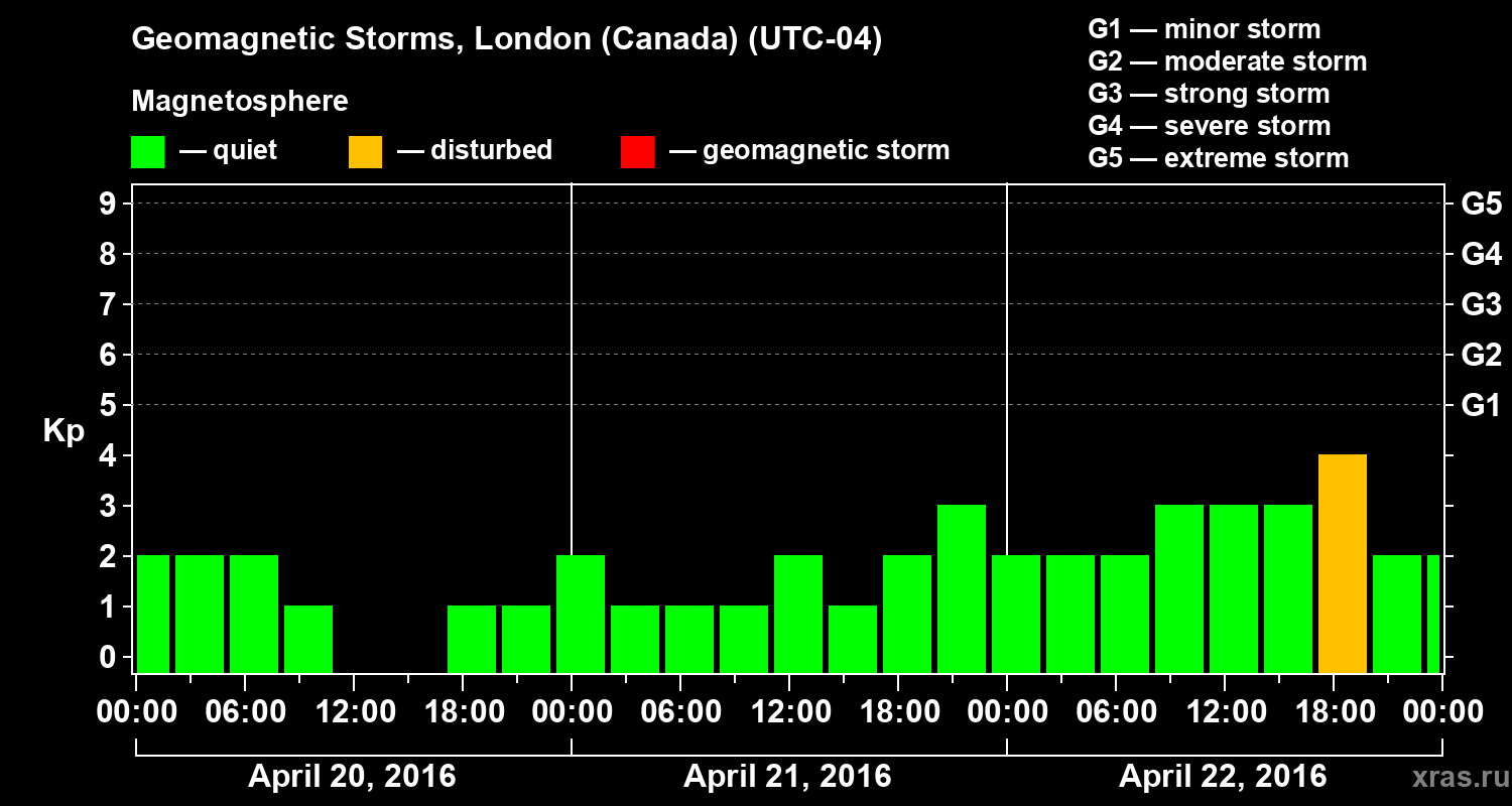 Geomagnetic storms in London (Canada) — Apr 22, 2016