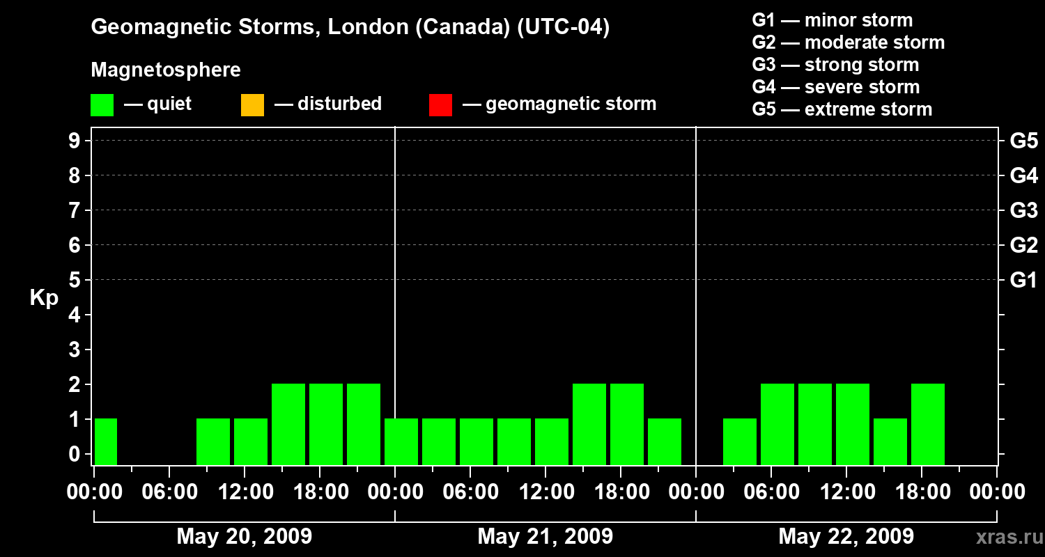 Geomagnetic storms in London (Canada) on May 22, 2009