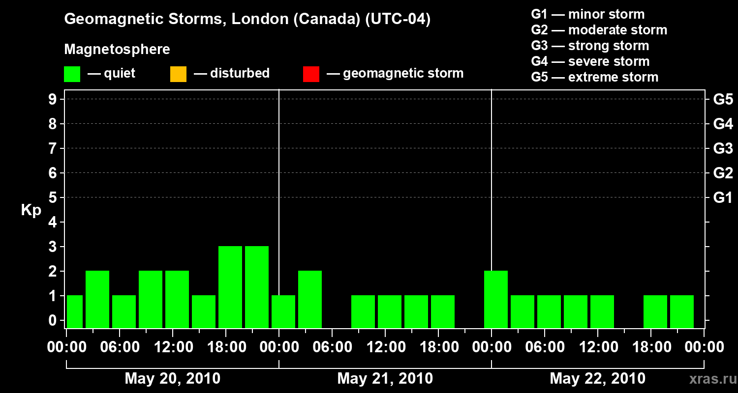 Geomagnetic storms in London (Canada) on May 22, 2010