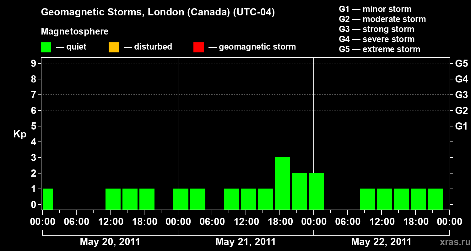 Geomagnetic storms in London (Canada) on May 22, 2011