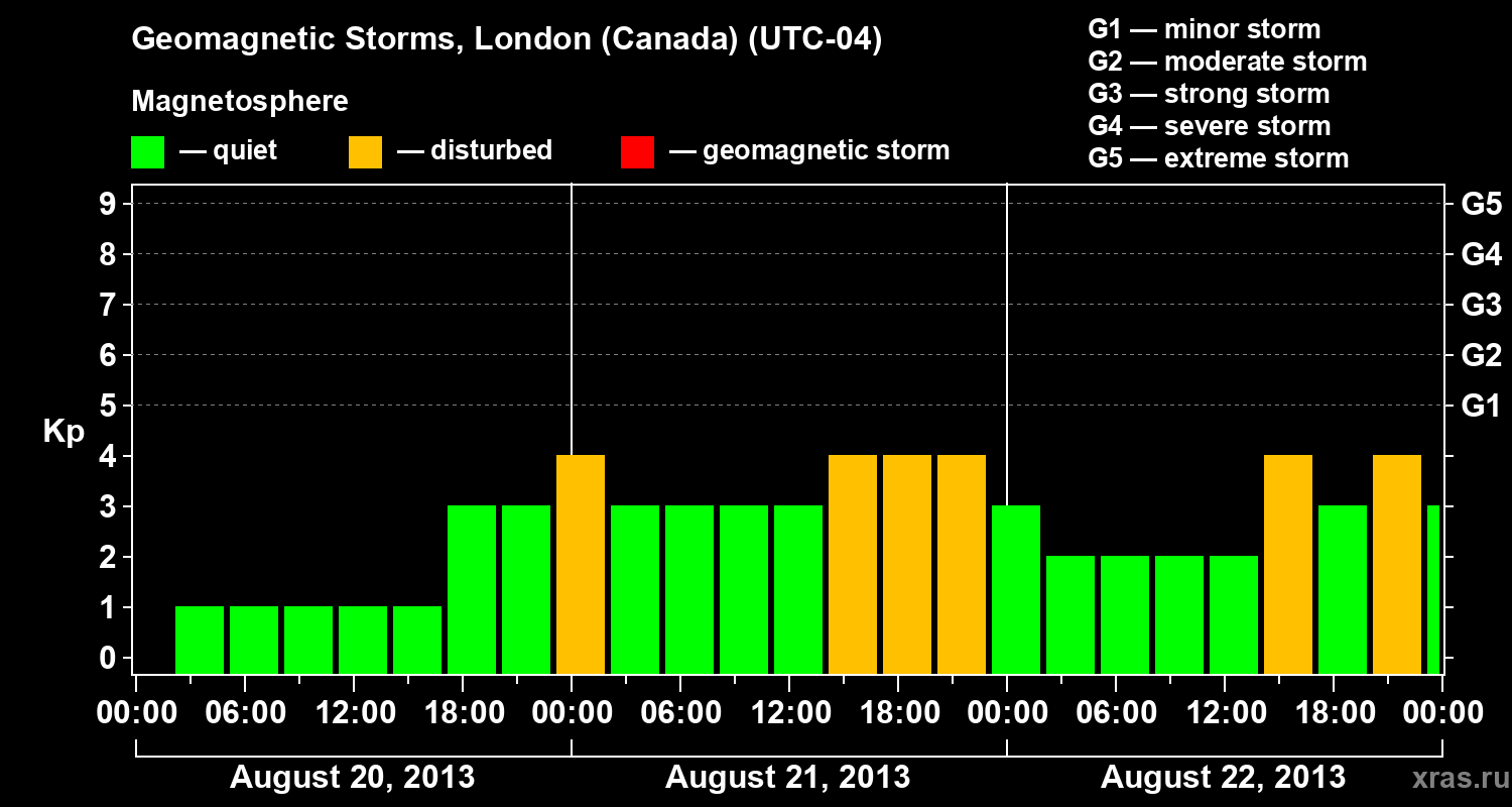 Geomagnetic storms in London (Canada) in August 2013