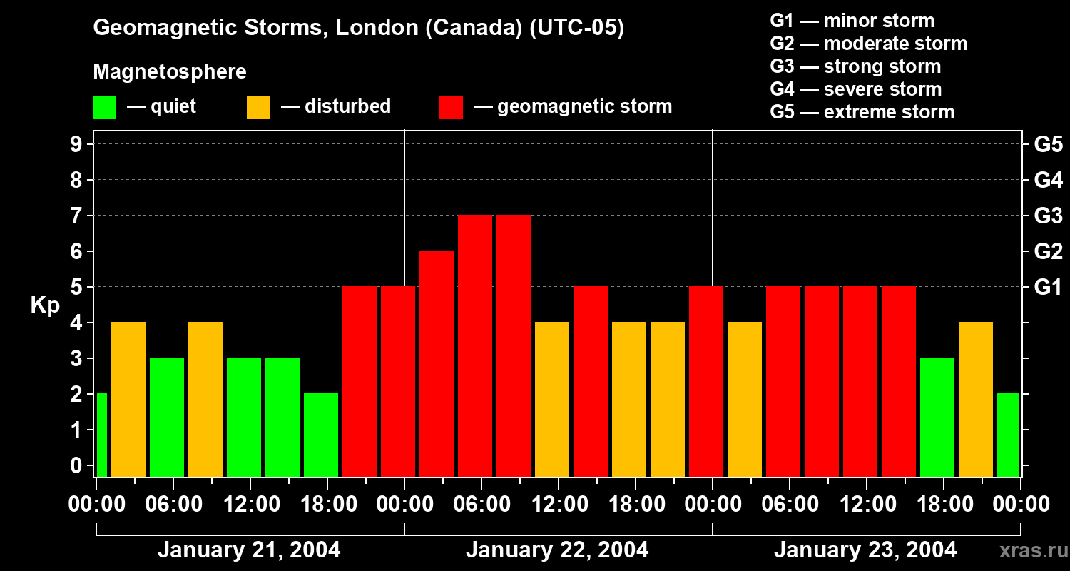 Geomagnetic storms in London (Canada) on Jan 23, 2004