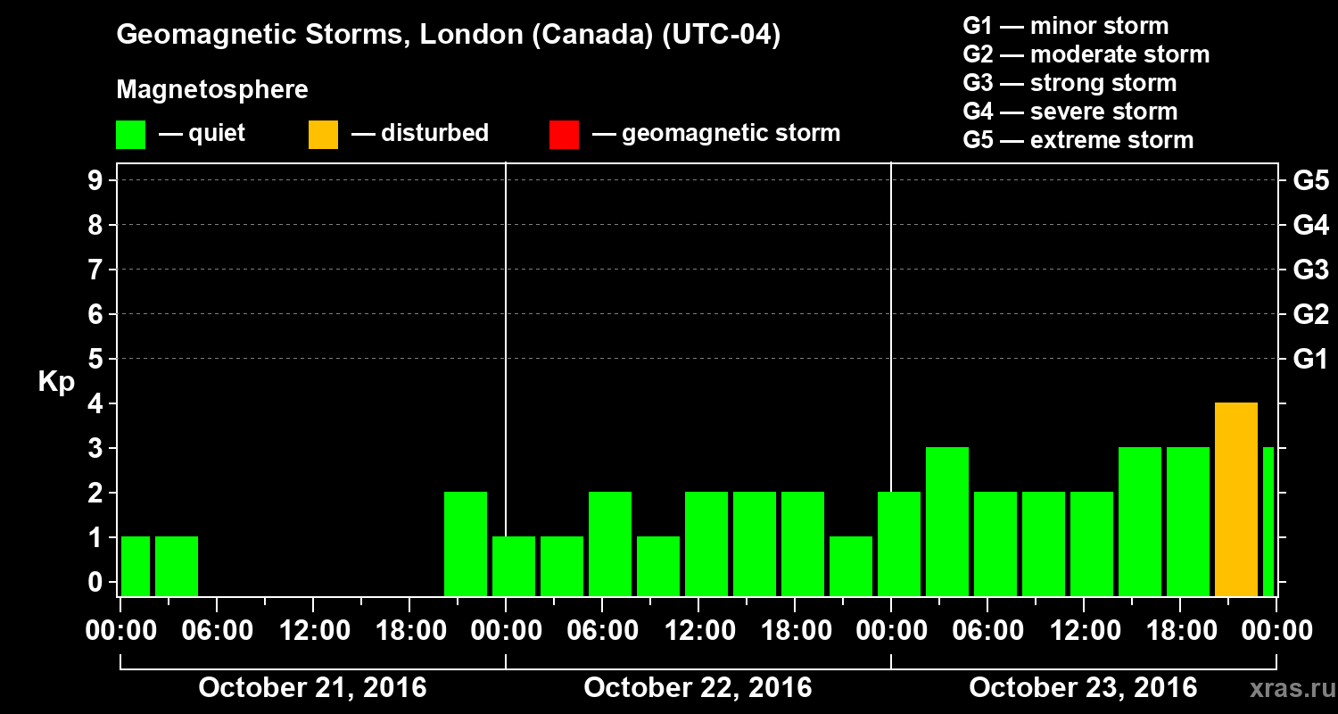 Geomagnetic storms in London (Canada) — Oct 23, 2016