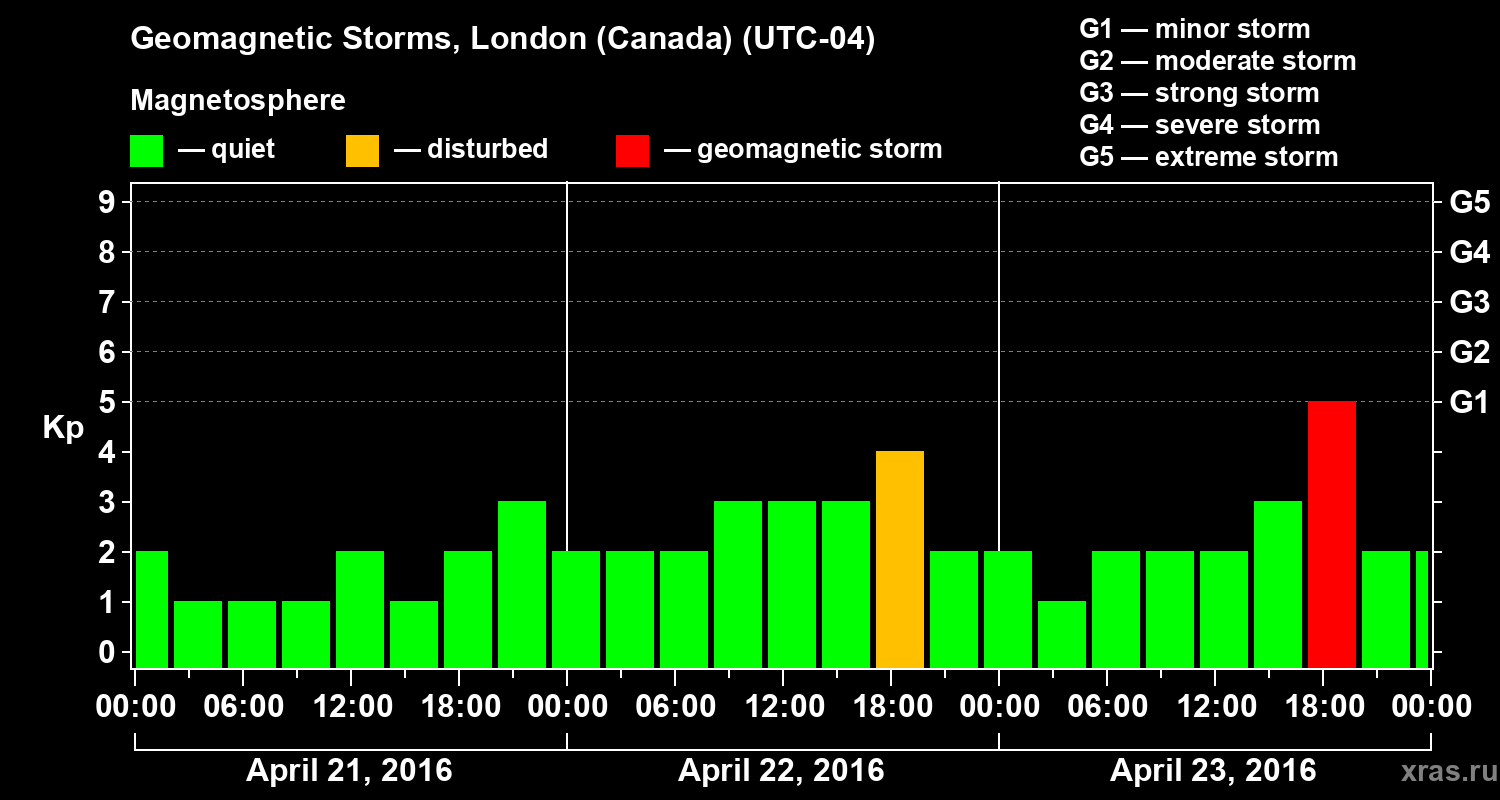 Geomagnetic storms in London (Canada) — Apr 23, 2016