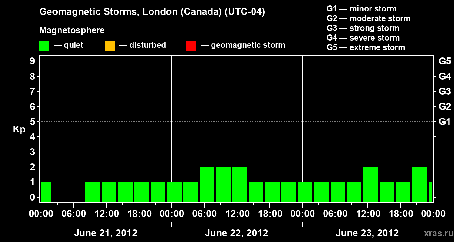 Geomagnetic storms in London (Canada) — Jun 23, 2012