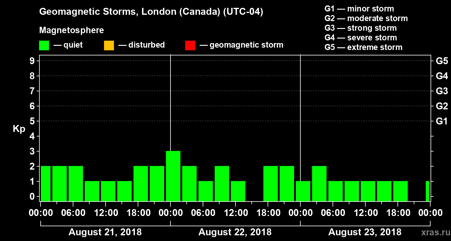 Geomagnetic storms in London (Canada) — Aug 23, 2018