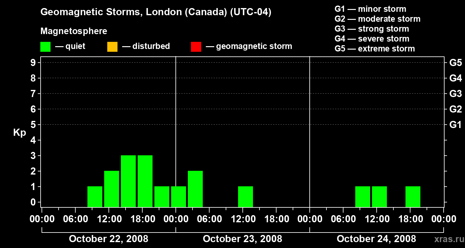 Geomagnetic storms in London (Canada) — Oct 24, 2008