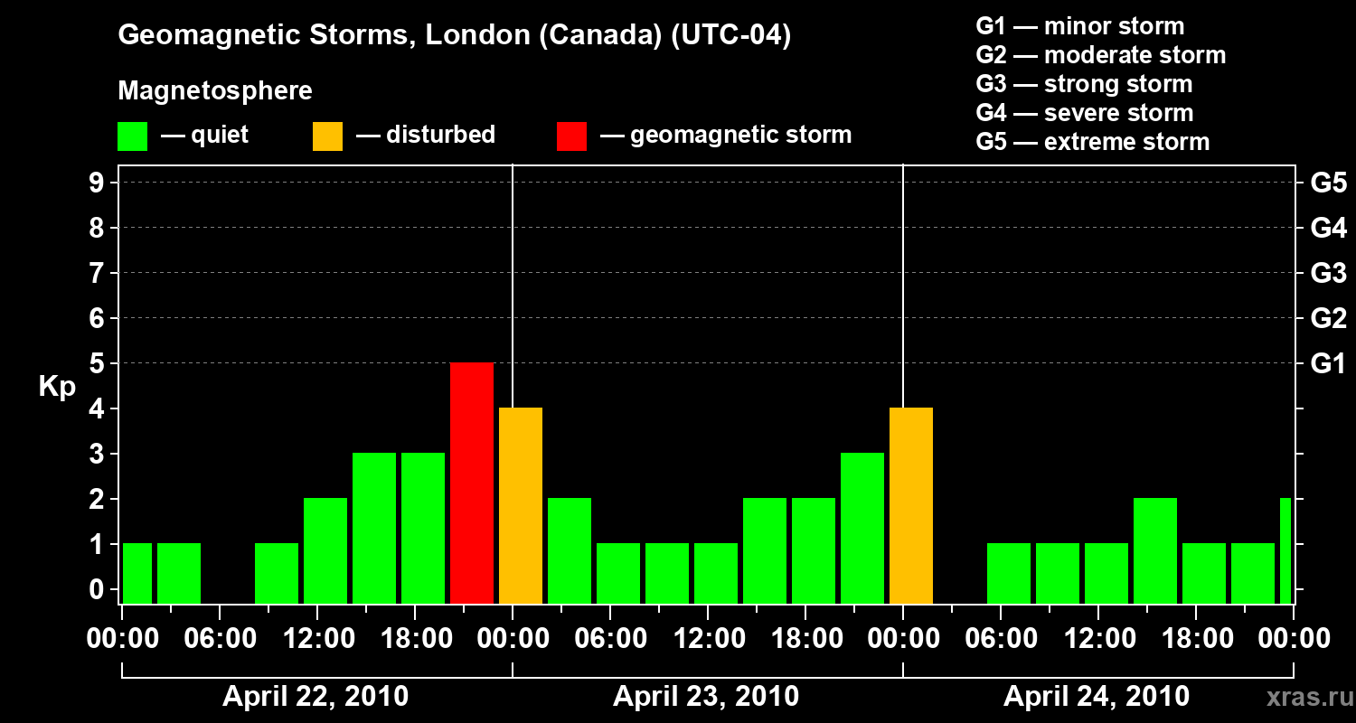 Geomagnetic storms in London (Canada) — Apr 24, 2010