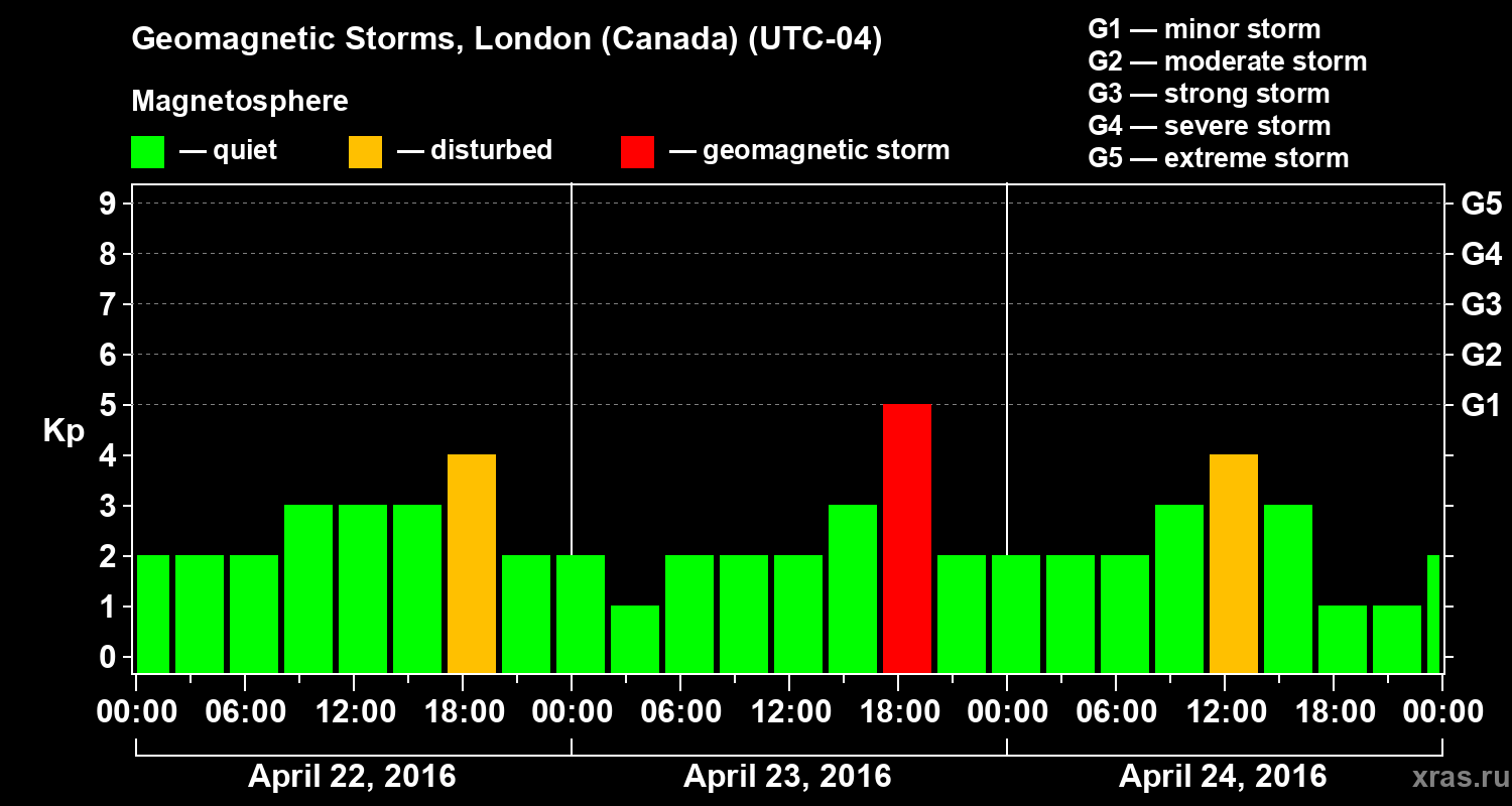 Geomagnetic storms in London (Canada) — Apr 24, 2016