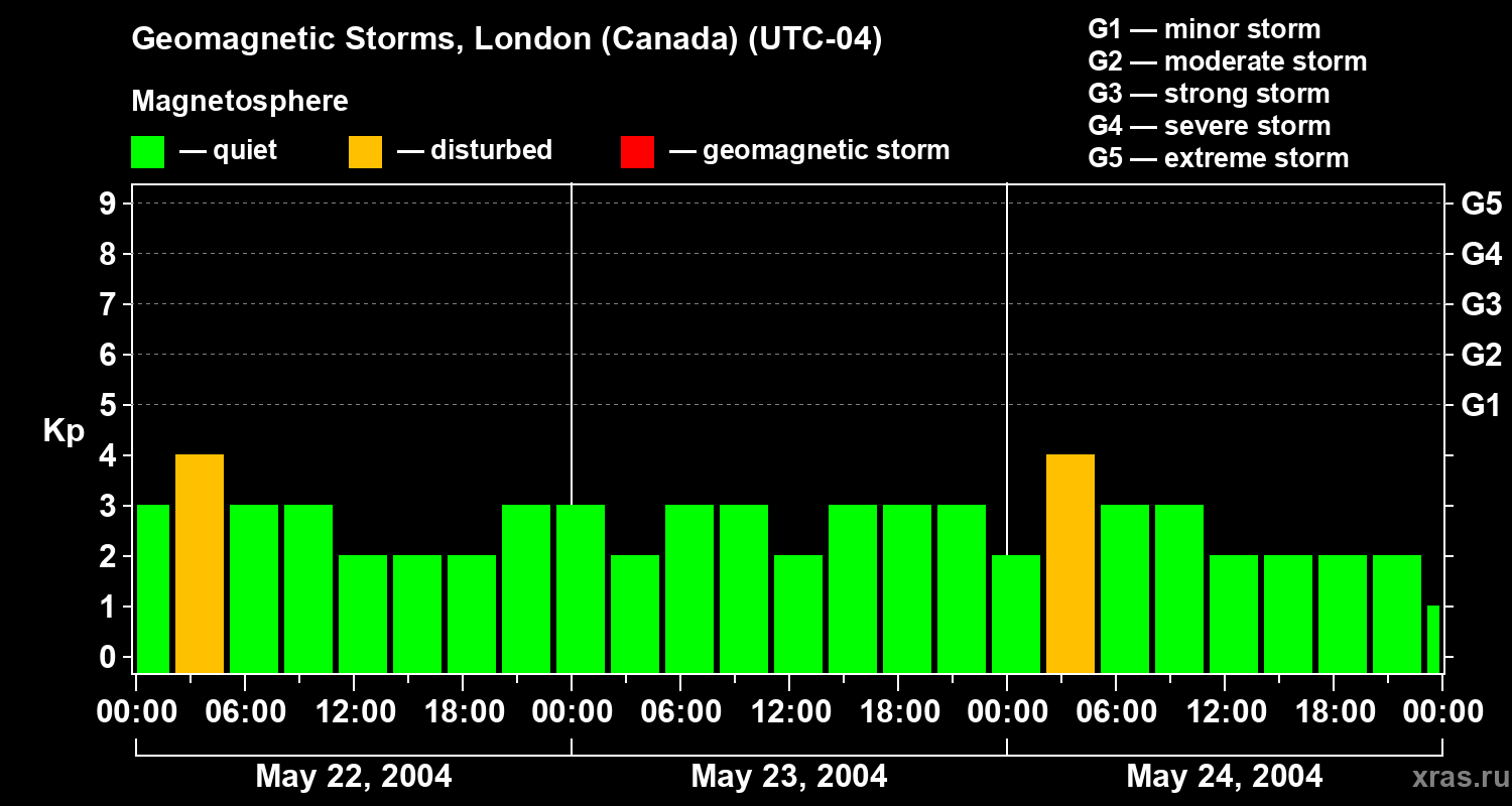 Geomagnetic storms in London (Canada) — May 24, 2004