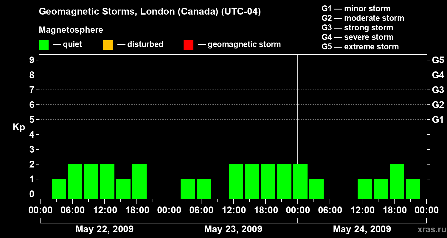 Geomagnetic storms in London (Canada) on May 24, 2009