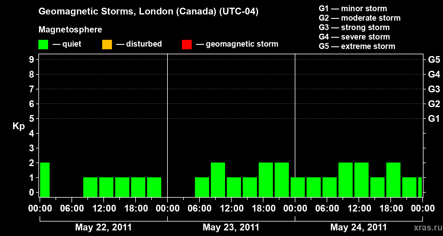 Geomagnetic storms in London (Canada) — May 24, 2011