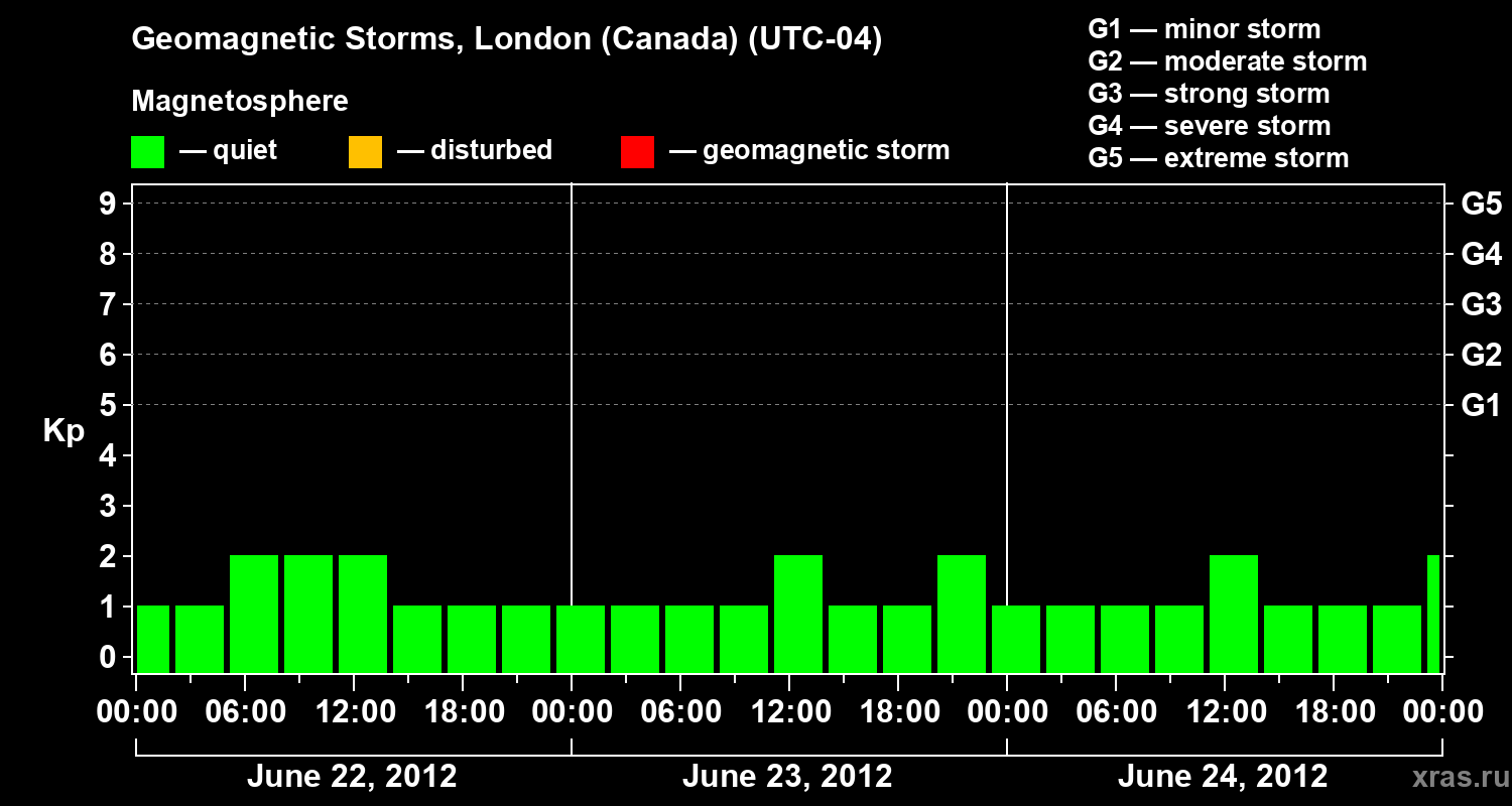 Geomagnetic storms in London (Canada) — Jun 24, 2012