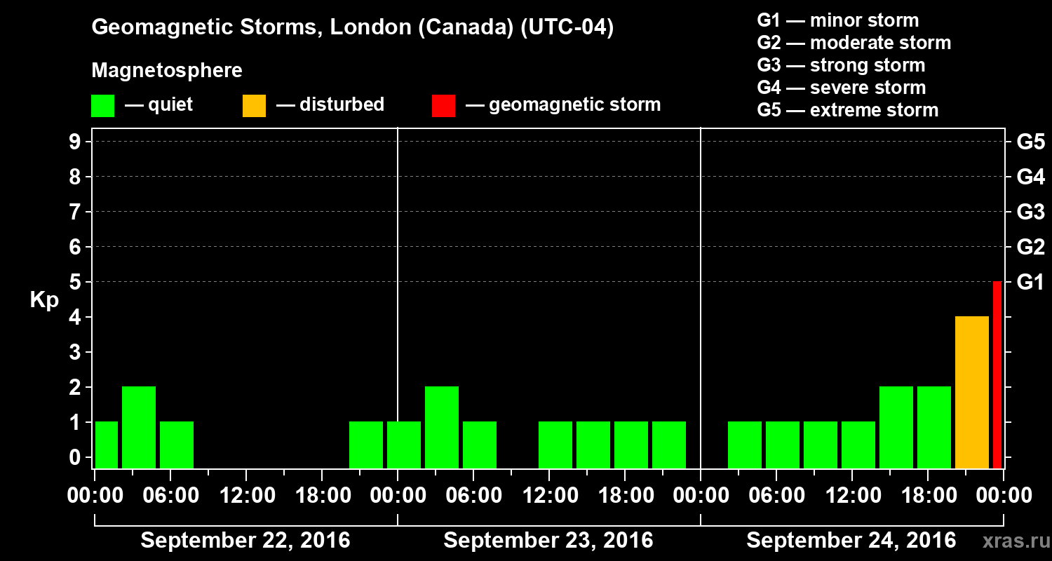 Geomagnetic storms in London (Canada) on Sep 24, 2016