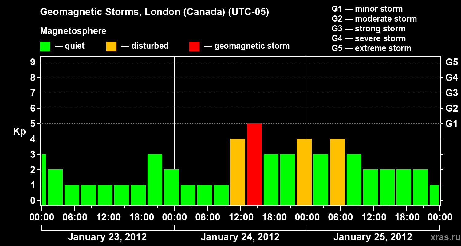 Geomagnetic storms in London (Canada) on Jan 25, 2012