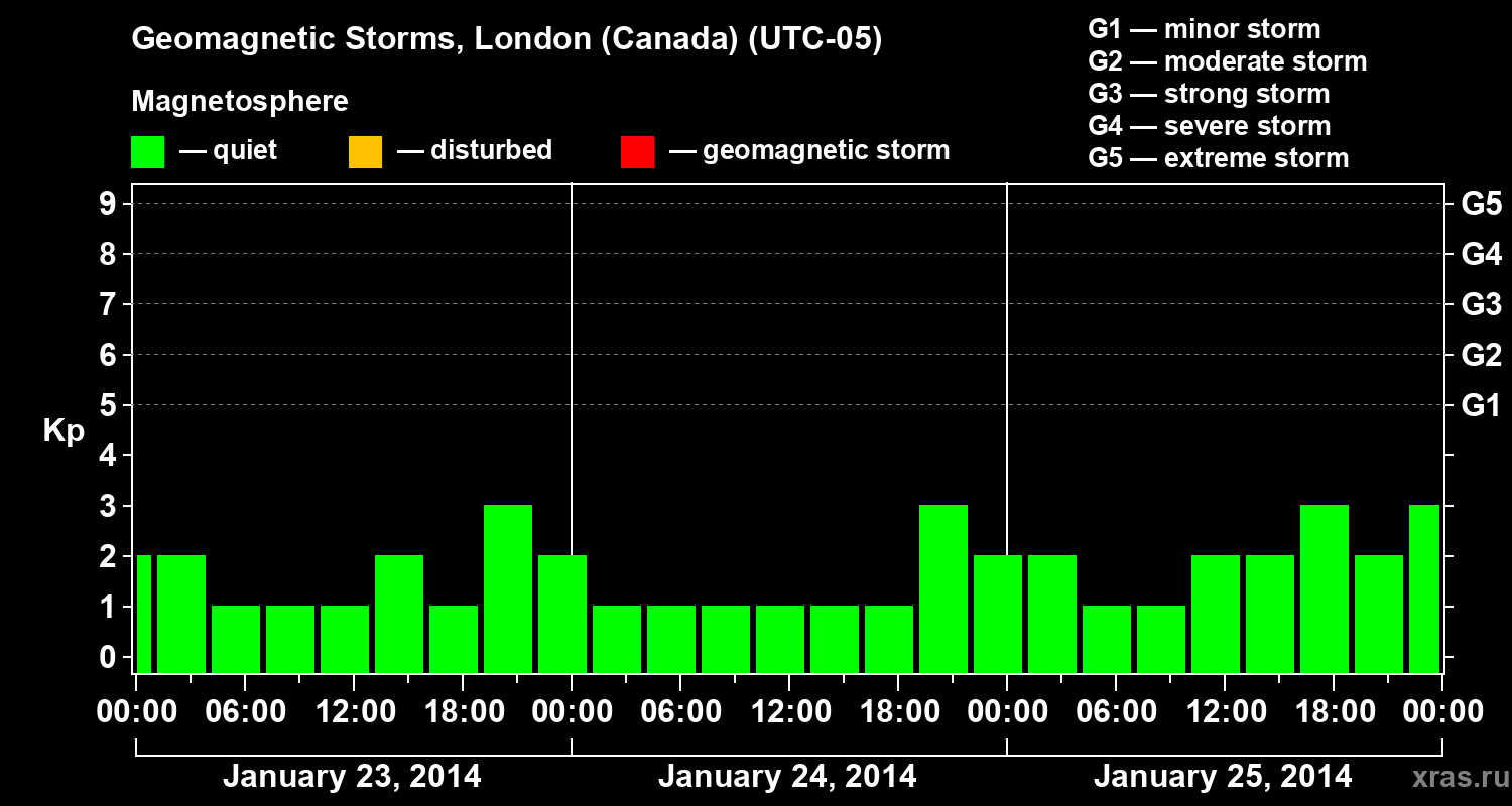 Geomagnetic storms in London (Canada) — Jan 25, 2014